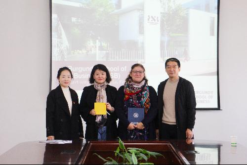 10月23日,法国勃艮第高等商学院国际处处长Bérengère MOINDROT女士应邀来校洽谈合作办学等事宜,bevictor伟德官网刘树文副经理参加会谈。