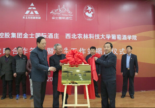 随后,金士国际酒庄总经理王高峰与公司党委书记胡俊鹏签署了战略合作协议。秦皇岛市人民政府政府副市长孙国胜、天士力控股集团董事局主席闫希军、李华教授共同为李华工作站揭牌。在签约和揭牌仪式后,李华教授做了题为《秦皇岛产区葡萄酒产业可持续发展报告》。