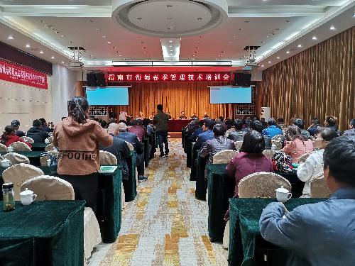 此次培训会采取 “座谈交流+示范田观摩+实地指导+集中授课+现场直播”模式进行培训。在4月1日晚间座谈会环节,bevictor伟德官网张宗勤副教授针对果农在实际生产当中遇到的问题,与参会农户代表进行了深入座谈,参会农户均积极发言。在集中授课环节,中国农业大学付学池副教授做了葡萄病虫害绿色防控技术的主题报告,张宗勤副教授针对当前葡萄冬季管理有关技术问题做了详细讲解,临渭区葡萄研究所所长王录俊针对农户品种选择问题做了鲜食葡萄主要优良品种介绍的主题报告。4月2日下午,有关学员参观了渭南临渭区葡萄研究所和渭南市葡萄产业园。在渭南临渭区葡萄研究所,王录俊所长结合讲课内容,针对鲜食葡萄品种优劣势对比、葡萄品种更新嫁接、肥水一体化等进行了现场培训。在渭南市葡萄产业园,张宗勤老师结合大树冠架型,对春季管理、架型培养等知识进行了现场培训。参会学员纷纷表示,这次培训及时解决了大家在葡萄品种选择、春季田间管理中遇到的技术问题和困惑,让果农受益匪浅,坚定了发展葡萄产业的信心。