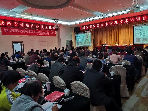 渭南市葡萄种植面积51.7万亩,是仅次于苹果种植的第二大产业,已经成为渭南市农民增收致富的主要产业之一。为了更好地围绕渭南市葡萄产业发展需求,促进渭南市葡萄产业提质增效,提高果农葡萄管理技术水平,4月1日-2日,伟德bv1946合阳葡萄试验示范站联合渭南市果业局、渭南市科技局、杨凌示范区管委会科技局等举办了渭南市葡萄春季管理综合培训会。来自全市有关县(市、区)果(农)业局葡萄技术骨干、葡萄种植企业(合作社)技术人员及种植大户代表共110余人参加了培训。