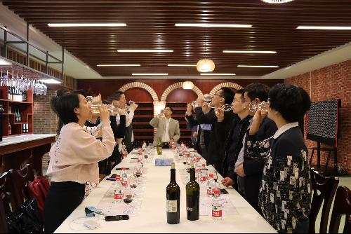 陶永胜教授陪同培训班学员们参观了学院的省级葡萄与葡萄酒工程实验教学示范中心,针对理化检测分析平台、酿造车间、中小式车间等特色向他们进行了详细的介绍,说明了葡萄酒酿造的基本过程。在地下酒窖,陶永胜向培训班学员们介绍了酒窖的基本功能,之后从外观、香气、口感三个方面入手,介绍了葡萄酒的感官质量,并带领学员们按照看、闻、尝的步骤逐一品尝了三款葡萄酒。培训班学员们对葡萄酒专业表示现出极大的兴趣,纷纷表示受益匪浅。