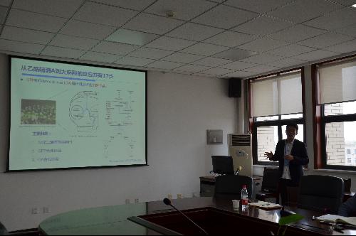 学术报告由经理房玉林主持,部分教师和研究生参加了活动。江南大学张云丰博士做了题为“胰蛋白酶的定向改造及大麻酸的生物合成研究”的报告,详细介绍了基于自活化策略的灰色链霉菌胰蛋白酶的分子改造,及其在毕赤酵母中的高效表达。张云丰博士同时汇报了其在加州大学伯克利分校联合培养期间所做的“代谢工程改造酿酒酵母从头合成大麻酸THCA和CBDA”研究的相关内容。