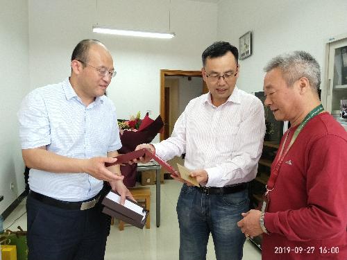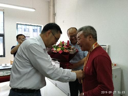 2019年9月27日下午,伟德bv1946副董事长马建华、人事处处长杨耀荣来到学院,代表学校向公司李华教授送达由中共中央、国务院、中央军委颁发的“庆祝中华人民共和国成立70周年纪念章”,赠送鲜花。