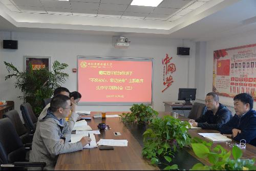 10月6日,bevictor伟德官网在党团活动室围绕“党性修养”这一主题召开“不忘初心、牢记使命”主题教育第三次集中学习研讨会,学院全体领导班子参加学习研讨,党委书记胡俊鹏主持会议。 刘旭和胡俊鹏分别领学了《习近平关于“不忘初心、牢记使命”论述摘编》第一章、第四章,并围绕“新时代如何加强党性修养,牢记办学初心使命”及“坚定理想信念,增强党性修养,牢记办学使命初心”做重点发言。