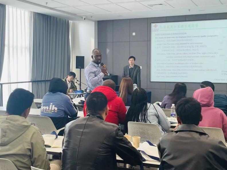 在培训期间,学员们对我国葡萄酒和果酒历史文化及其产业发展表现出了浓厚的兴趣,他们结合自身国家的情况,热烈地询问了李华教授关于果酒发展和生产上的问题,也进一步了解了中国葡萄酒和果酒发展的状况。在韩富亮副教授授课期间,他们进一步学习了葡萄酒品尝的方法,询问了葡萄酒风味营养与安全方面的问题。在品尝了韩富亮副教授团队新研发的葡萄酒后,当即询问在哪里可以购买?他们想带回自己的国家。有的学员则表示,想要寻找中国的合作伙伴,探讨开展葡萄酒和果酒国际贸易工作的可能性。